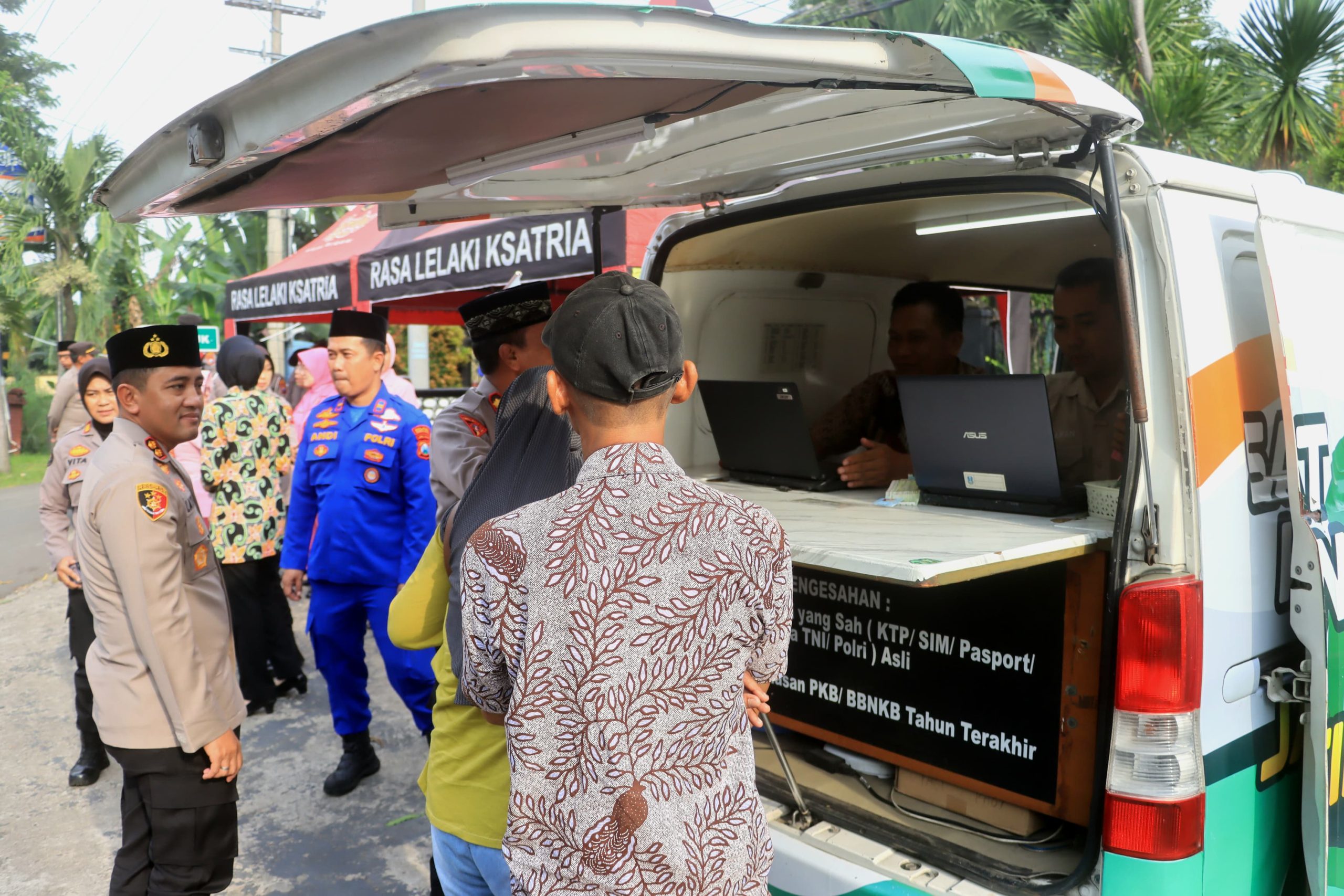 Melalui kegiatan berbagi takjil, petugas menghadirkan layanan Samsat dan Sim Keliling agar warga dapat mengurus administrasi kendaraan dengan lebih mudah.
